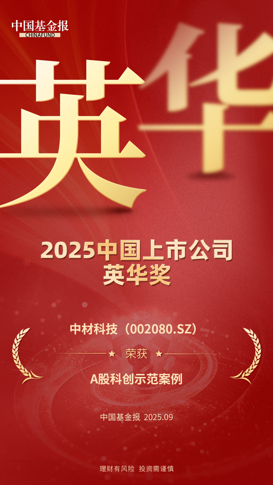 9月16日,由《中国基金报》主办的“中国资本市场发展论坛暨上市公司论坛”在上海举行,大会同步揭晓了“2025中国上市公司英华奖”评选结果,中国建材股份及所属六家上市公司荣获十一项大奖。其中,中国建材股...