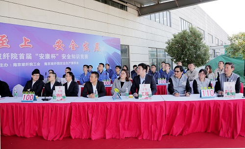 为强化南京玻纤院全员安全生产意识,进一步加强安全文化建设,10月26日,南京玻纤院工会委员会、南京玻纤院安全生产委员会举办了南京玻纤院首届“安康杯”安全知识竞赛活动,来自院工会所属的分工会共11支代表队参加比赛。南京玻纤院副院长于守富、党委副书记张文进、工会主席何朝远,院工会委员,分工会主席,及各单位安全分管领导、安全管理人员、生产和技术骨干120余人参加此次活动。本次竞赛活动特邀中材科技总部安全环保部部长安儒波同志出席本次活动并担任仲裁裁判组裁判长。