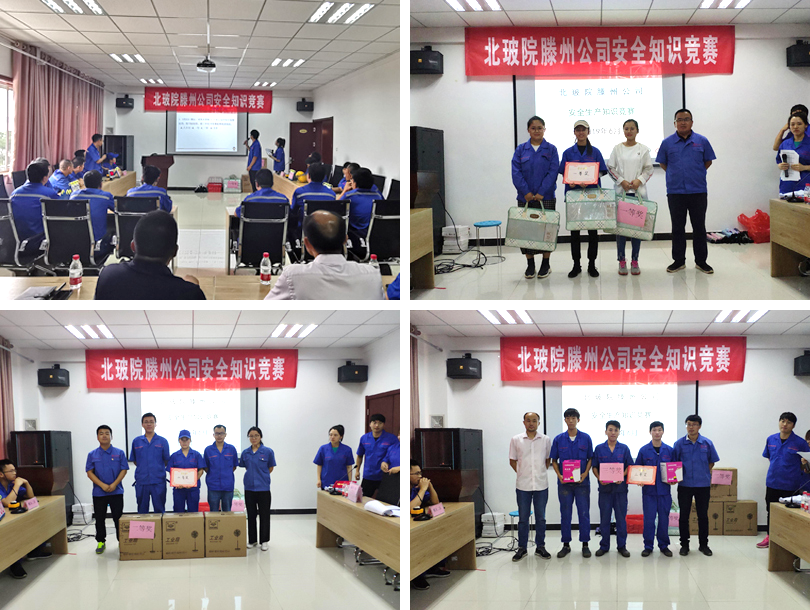 - 为全面普及员工安全知识,强化员工安全教育和“安全第一”的理念,树立“防风险、除隐患、遏事故”的安全意识,营造企业安全文化氛围, 6 月 20 日,北玻院滕州公司举办了安全知识竞赛。北玻院滕州公司副总经理张明辉、新材料事业部经理李磊出席本次竞赛并担任评委。