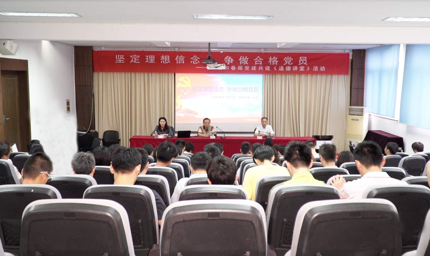 - 在纪念中国共产党建党97周年之际,为认真学习贯彻习近平新时代中国特色社会主义思想,促进党的建设与企业发展良性互动,搭建业务分享交流平台,近日,南京玻纤院结对共建支部——工程党(总)支和春辉党支部组织了第二次共建活动,开展了主题为“坚定理想信念,勇于担当作为,争做合格党员”的道德讲堂教育活动。此次共建活动特邀请南京玻纤院工会主席何朝远为“道德讲堂”讲师。参加人员有两个支部的党员及党员干部、入党积极分子和部分青年团员。