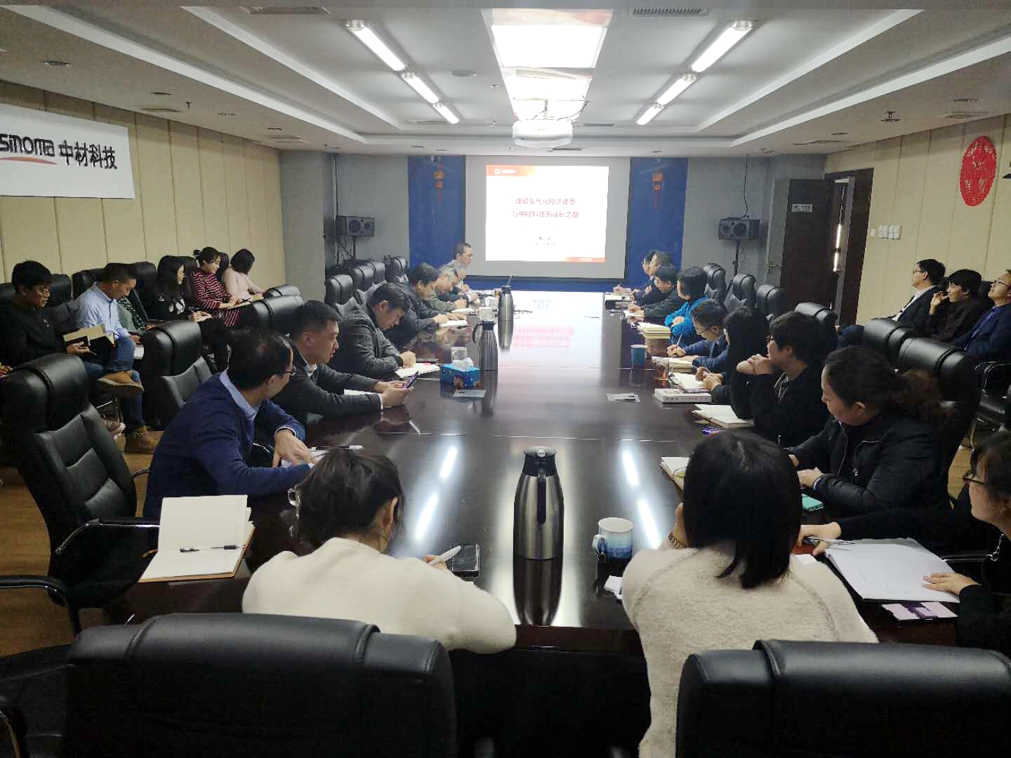 12月24日下午,中材科技副总裁、董事会秘书陈志斌结合自己学习党的十九大精神体会以《建设现代化经济体系与中材科技的成长之路》为题在总部党支部上了一堂内容丰富的党课。公司领导班子成员、总部全体党员、入党积极分子参加学习。总部党群工作部部长赵春英主持党课学习。