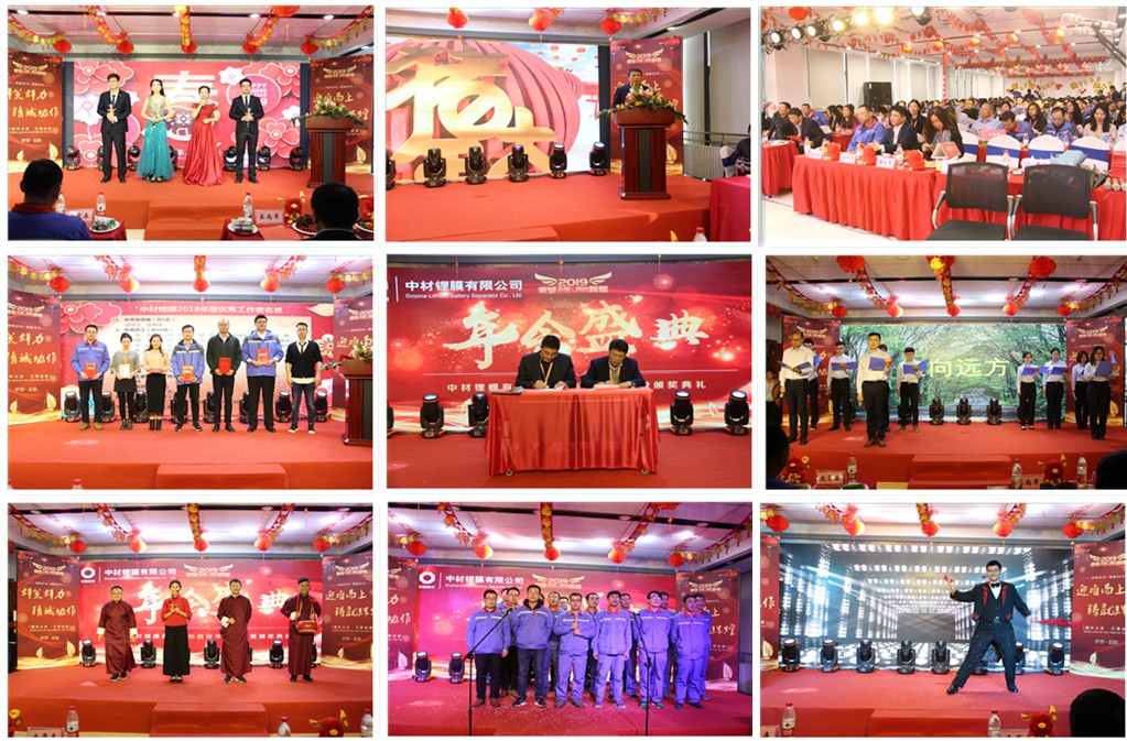 - 为迎接2019年新春佳节的到来,1月28日,中材锂膜公司举办2019迎新春茶话会,公司领导、全体职工300余人欢聚一堂,共迎新年、共话发展。